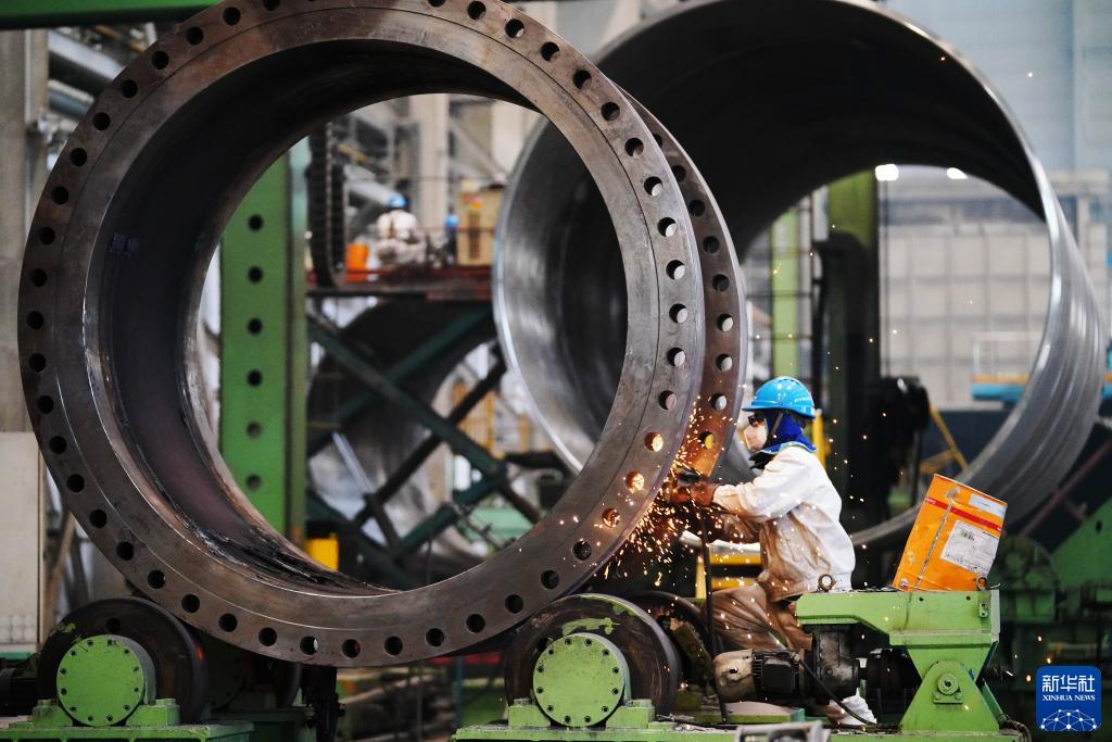 4月14日,在哈电集团哈尔滨锅炉厂有限责任公司车间,工人在进行生产作业。