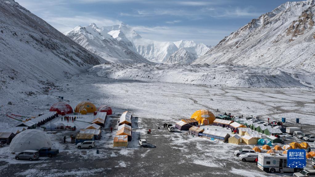 这是珠峰登山大本营(5月1日摄,无人机照片)。