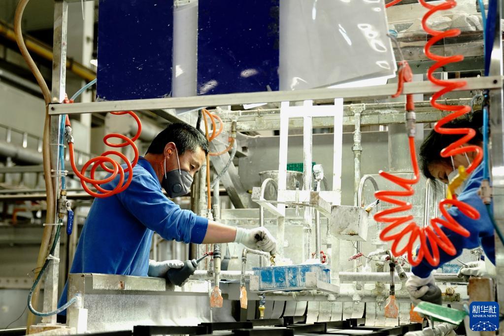 4月29日,上海加冷松芝汽车空调股份有限公司工人在生产车间忙碌。