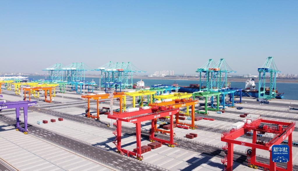 这是天津港北疆港区C段智能化集装箱码头(2021年10月17日摄,无人机照片)。