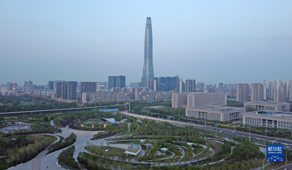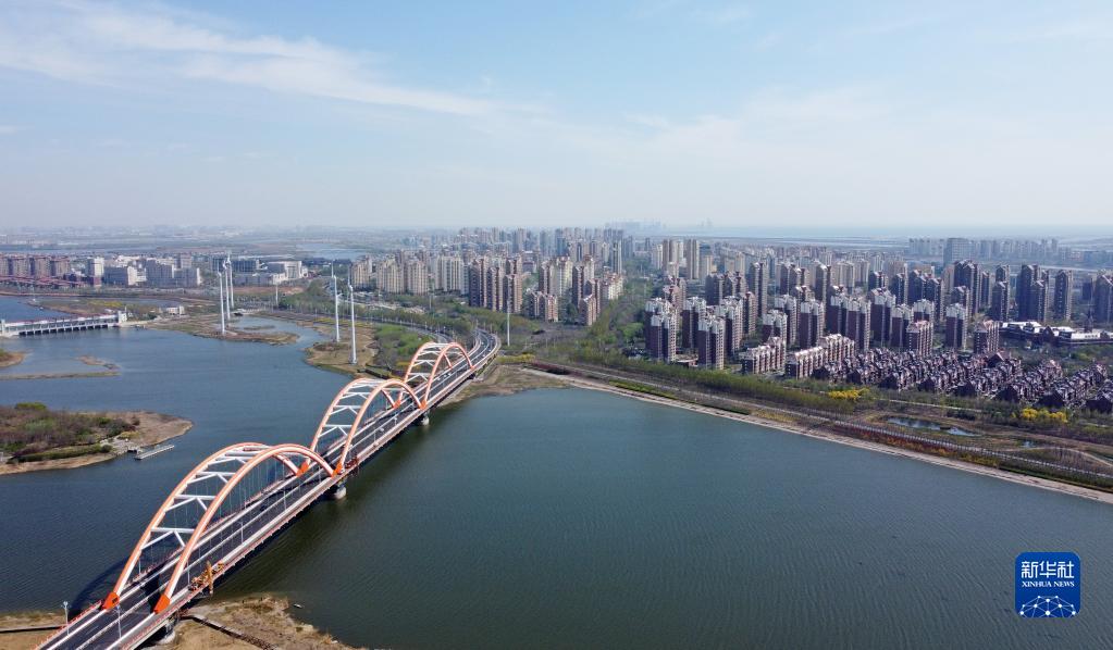 这是4月14日拍摄的中新天津生态城新貌(无人机照片)。