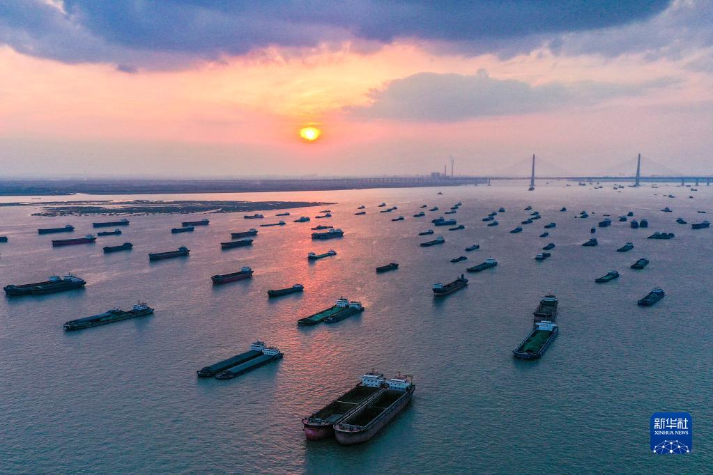 这是2021年10月25日拍摄的长江南通段(无人机照片)。