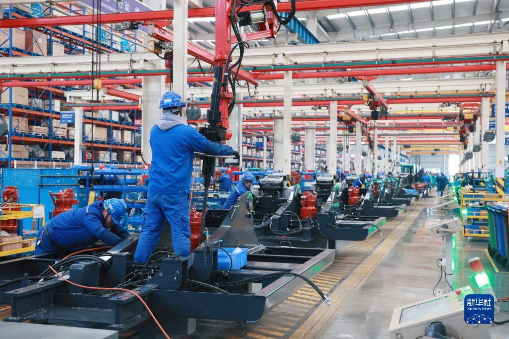 2月7日,湖南山河智能装备股份有限公司的工作人员在车间调试设备。
