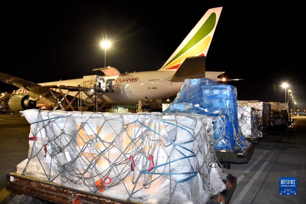2020年4月14日,中国援助的抗疫物资抵达南非约翰内斯堡奥坦博国际机场。