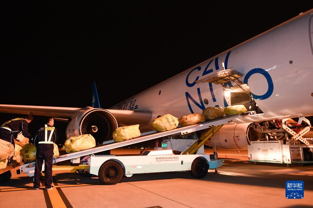 2019年10月30日凌晨,浙江杭州飞往俄罗斯首都莫斯科的首条直达电商货运航线“菜鸟号”从萧山国际机场首航。