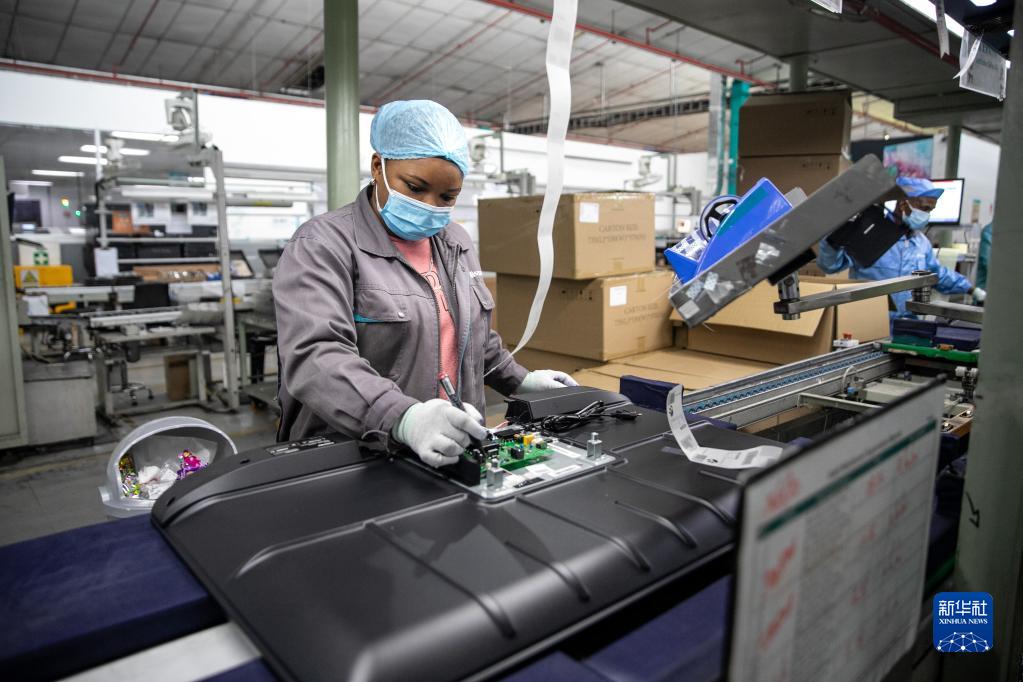 2022年6月1日,当地员工在南非开普敦海信南非工业园的电视机生产线上工作。