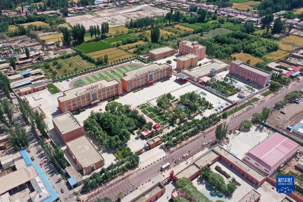 这是新疆喀什地区疏附县托克扎克镇中心小学(2022年6月10日摄,无人机照片)。