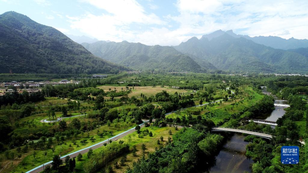 这是2019年7月26日拍摄的陕西省西安市长安区秦岭违建别墅拆除后建设的秦岭和谐森林公园(无人机照片)。