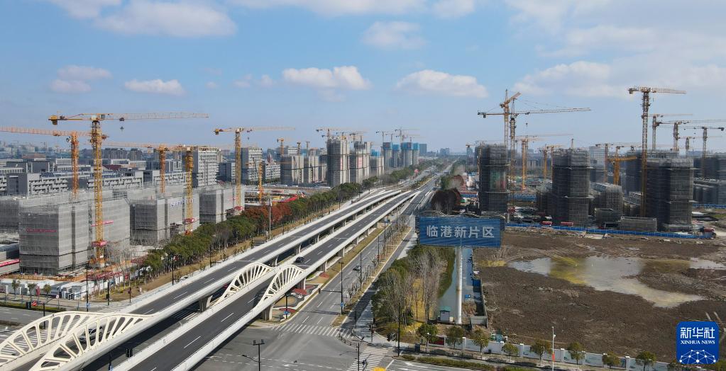 在中国(上海)自由贸易试验区临港新片区拍摄的住宅区建设现场(2022年2月10日摄,无人机照片)。