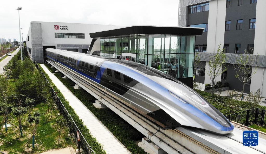 这是在山东青岛拍摄的时速600公里高速磁浮交通系统(2021年7月20日摄,无人机照片)。