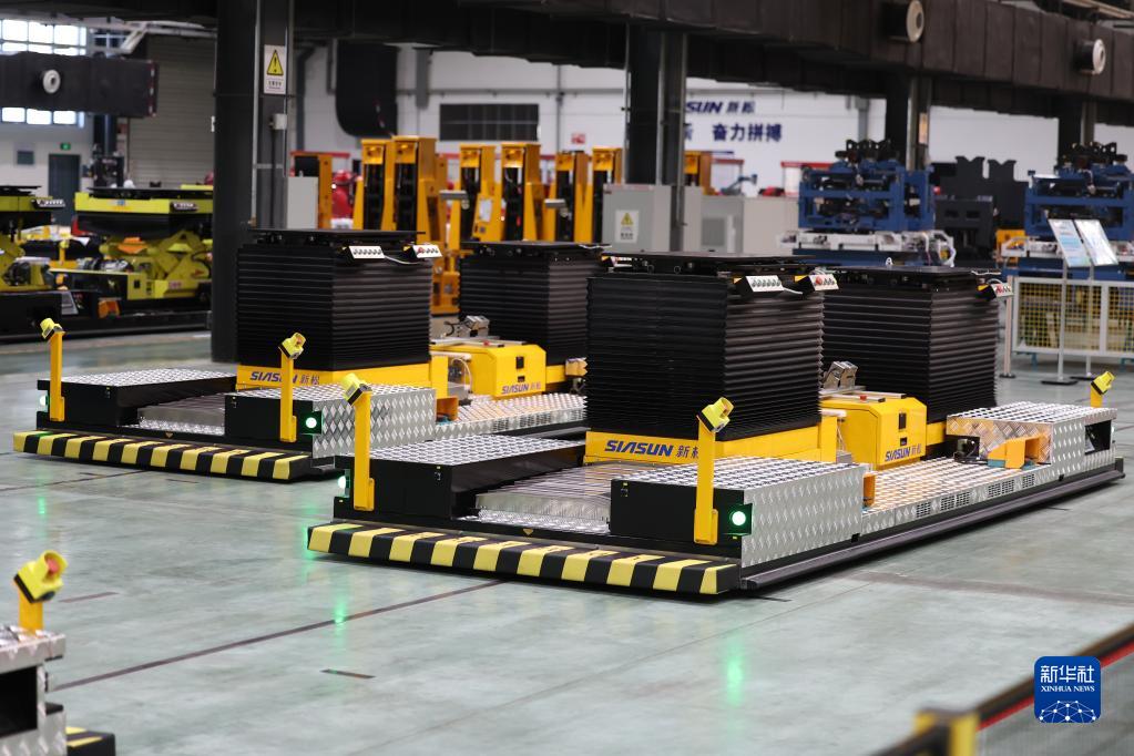 这是在沈阳新松机器人自动化股份有限公司拍摄的双举升合装移动机器人。