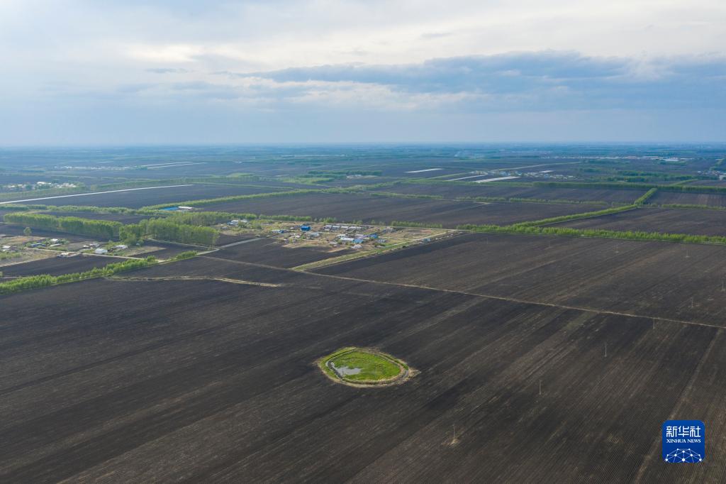 这是黑龙江省海伦市前进镇光荣村已完成播种的黑土耕地(无人机照片,2022年5月23日摄)。