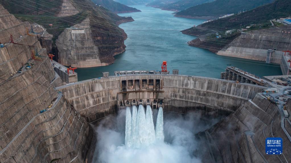 这是白鹤滩水电站(无人机照片,2022年5月29日摄)。