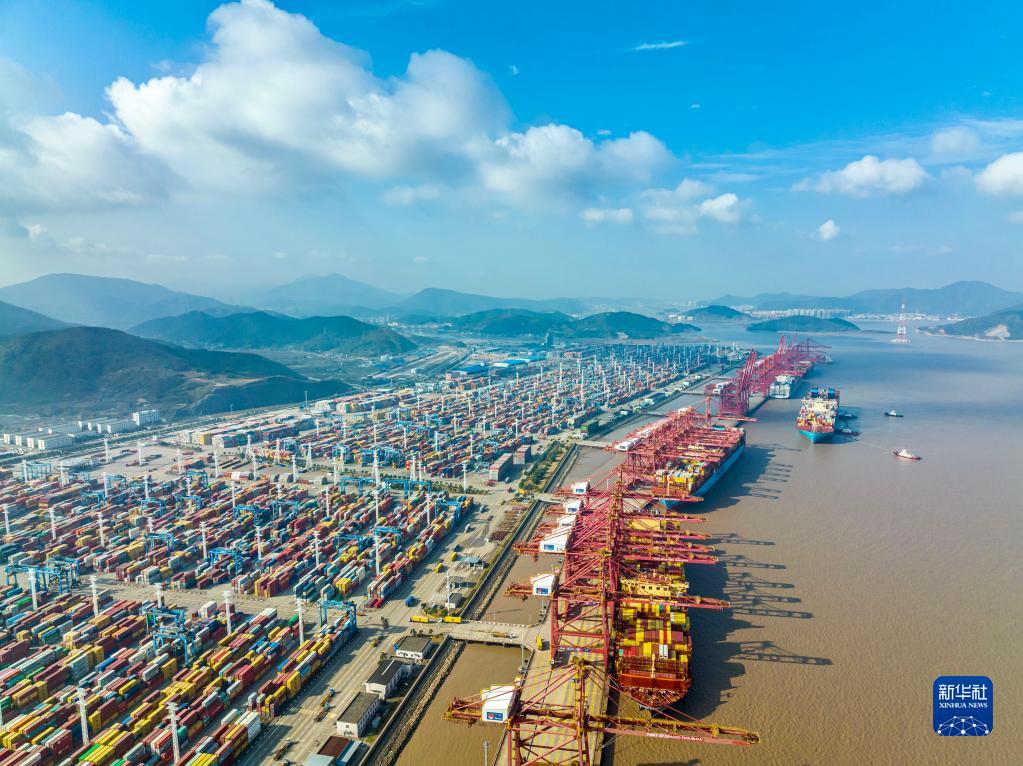 这是浙江宁波舟山港穿山港区(2021年12月24日摄,无人机照片)。