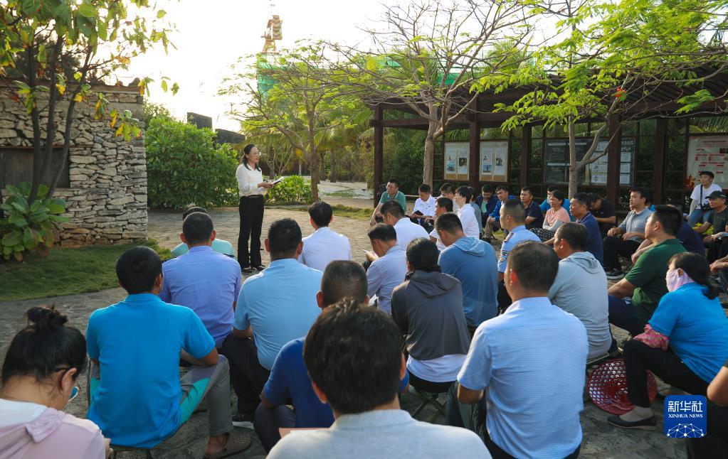 11月17日,党的二十大代表、海南陵水黎族自治县文罗镇副镇长、五星村党总支书记黄丽萍在三沙市赵述岛宣讲党的二十大精神。