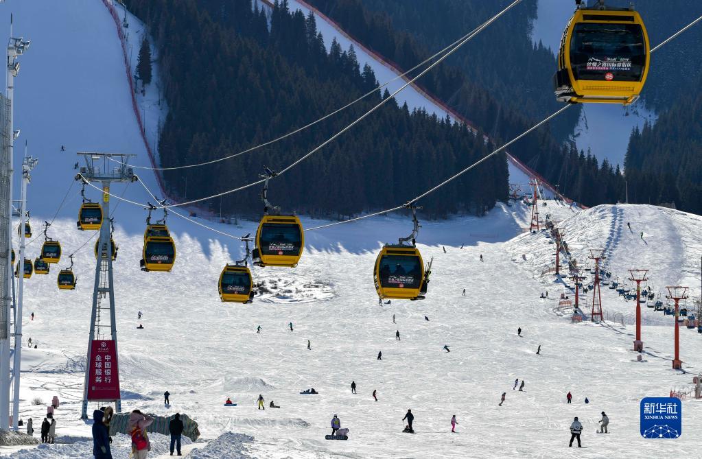 天空湛蓝清澈,大地银装素裹……在新疆阿勒泰地区的雪道上,游客王先生和家人在冰雪世界中尽情驰骋。