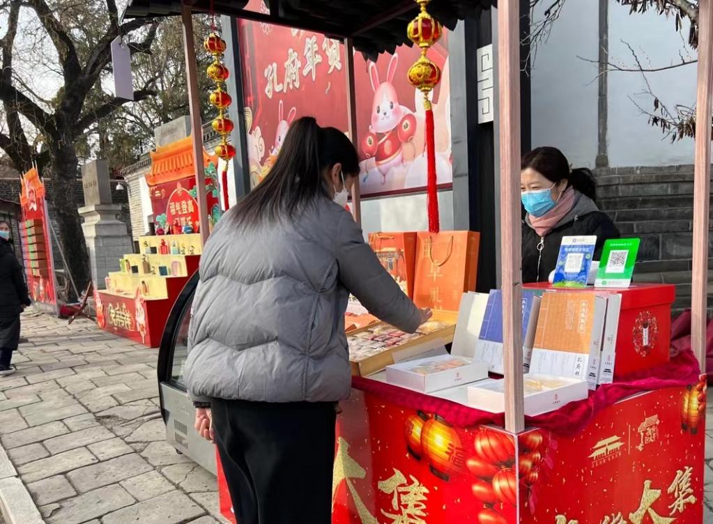 新春市集上,孔府糕点吸引了众多消费者前来购买。