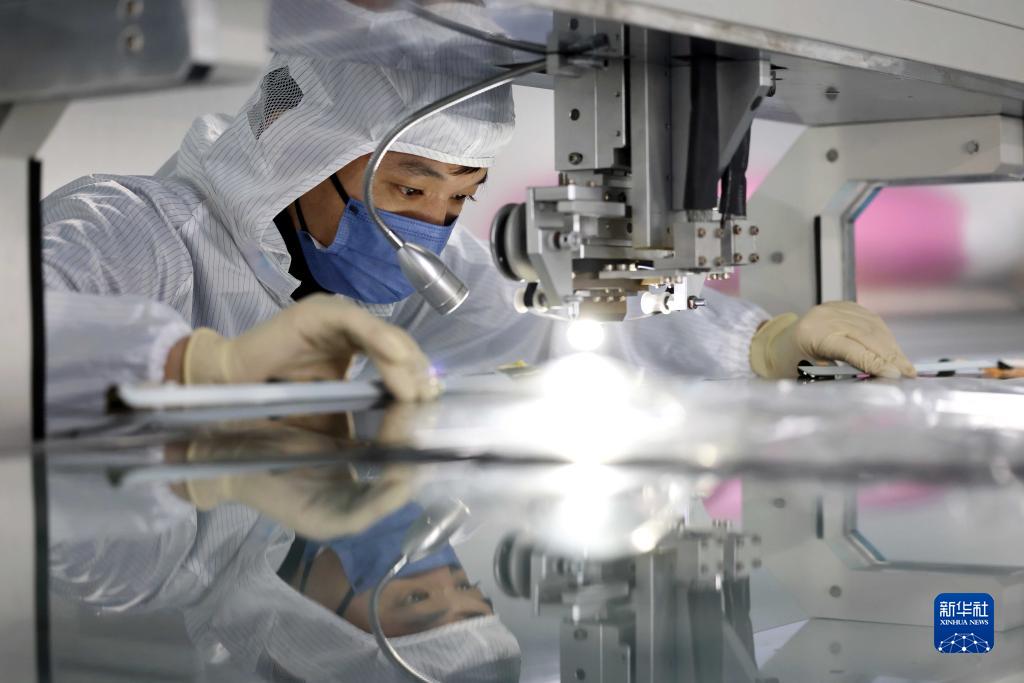 1月5日,在合肥市瑶海区长三角数字科技示范园,合肥统旭智慧科技有限公司的员工在智慧显示屏生产线上作业。