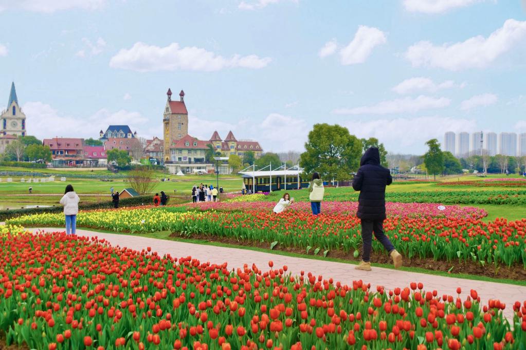 2月,武汉花博汇景区30万株郁金香、紫罗兰等花卉绽放。