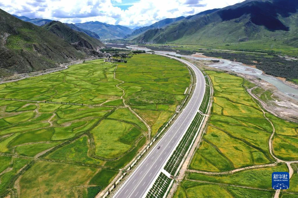 2019年8月16日拍摄的拉林公路一景(无人机照片)。
