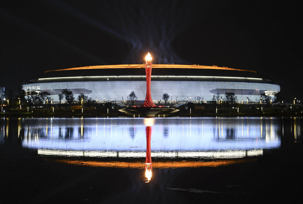 这是2023年7月28日拍摄的第31届世界大学生夏季运动会主火炬。新华社记者 张端 摄