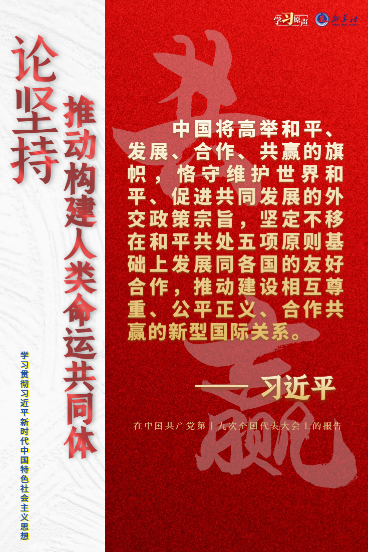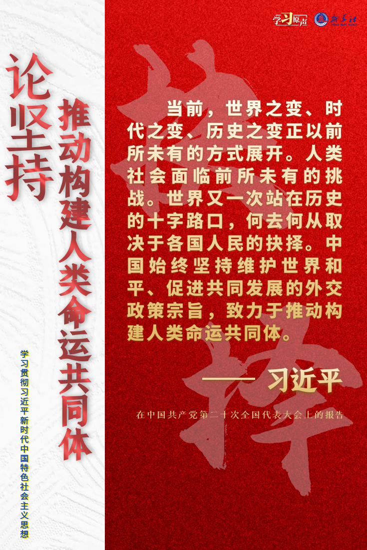 当前,世界之变、时代之变、历史之变正以前所未有的方式展开。人类社会面临前所未有的挑战。世界又一次站在历史的十字路口,何去何从取决于各国人民的抉择。中国始终坚持维护世界和平、促进共同发展的外交政策宗旨,致力于推动构建人类命运共同体。