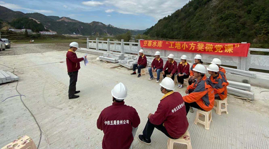 中铁五局贵州公司空寨水库工程项目部组织党员开展现场微党课活动