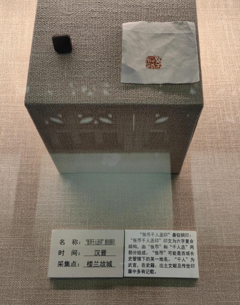 2015年,“张帀千人丞印”字样的铜制官印在楼兰出土。考古人员表示,“张帀”可能是西域长史管辖下的某一地名。