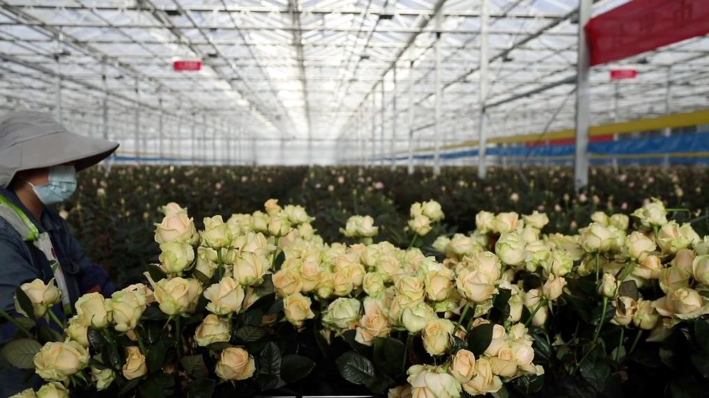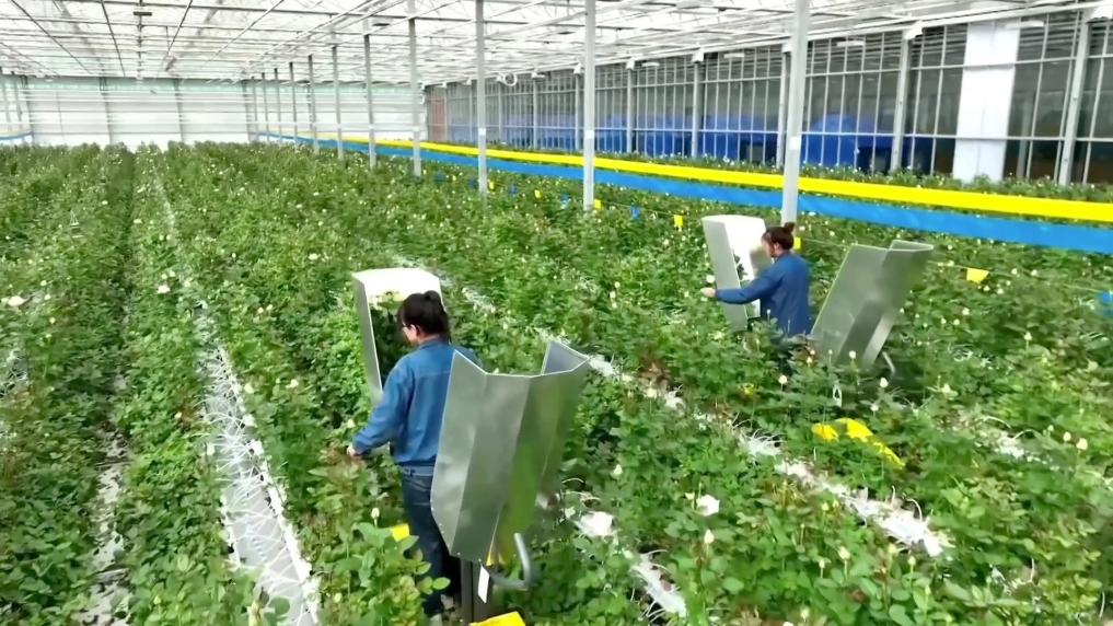 位于甘肃省临夏市枹罕镇的百益亿农国际鲜花港玫瑰工厂内,不同品种的玫瑰花竞相盛开,工作人员忙着采摘打包,一派火热景象。现代科技的助力,让传统农业变得更加智慧美丽。