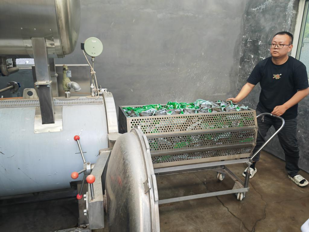 刘军芳正在对粽子进行高温灭菌。