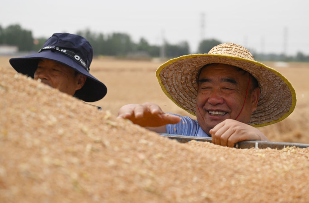 2024年5月29日,在太和县淙祥现代农业种植专业合作社,徐淙祥察看收获的小麦。